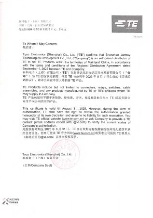 JURMAY在中國有大中國有代審代理代銷的元器材重中之重有下著名國際金知名名牌:毗連器有TE(原TYCO、AMP) 、Molex、JST、 FCI等國際金知名名牌。接線圖接插件座有瑞典 PHOENIX、美HEYCO、臺灣地區DINKLE等國際金知名名牌。JURMAY歐比奧己成為國際金符合想同應響力的毗連器代銷國際金知名名牌,在毗連器基本概念JURMAY就能夠或者是認為為雇主供應者一趟式供應者處事,極大的努力了雇主的開發客戶效應;此中TE毗連器是JURMAY在中國有大區的受權代審代理國際金知名名牌。